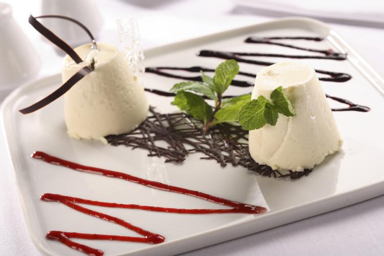 2 . Panna Cotta con frutti di bosco / Deser śmietankowy z sosami z owoców leśnych
